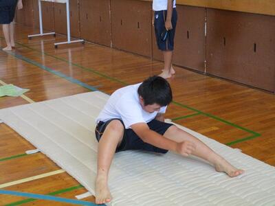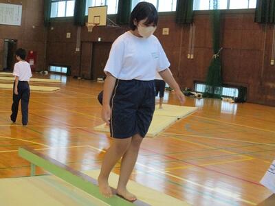 体育の授業では、マットや平均台を使っての授業が始まりました。