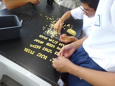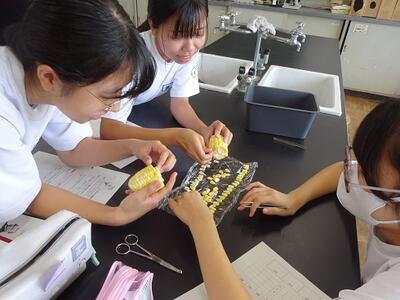 トウモロコシを使って実験を行い、遺伝子の規則性について調べていました。