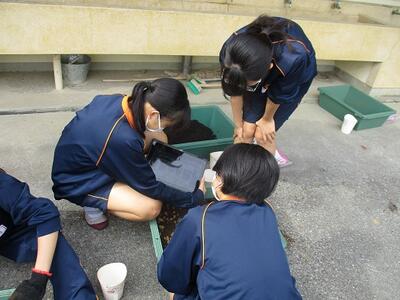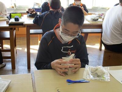 美術の授業では、粘土を使って立体作品を製作していました。