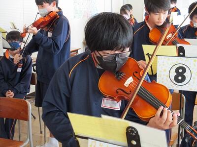 写真は2年生の授業の様子ですが、昨年もやっているので、きれいな音がでていました。