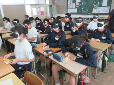 本日2年生は、視覚に障がいを持った方をお招きし、実際に日常で苦労していることや、自分たち健常者がお手伝いできること、そのときの注意点などの話を聞き、理解を深めることができました。また、実際にアイマスク体験で折り紙に取り組み、さらに視覚障がいの苦労も実感できました。