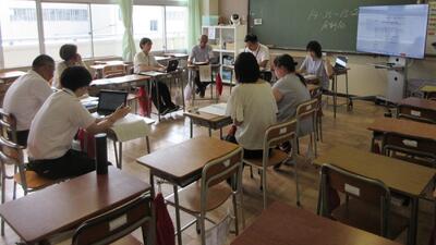 本日5校時目に、第1回学校保健委員会が図書室で行われました。校医の先生方や保護者の方々に、定期健康診断や新体力テストの結果についての説明を行いました。また、3年保健委員会から「薬物乱用防止教室について」の自作啓発ビデオやアンケート結果についての発表がありました。その後、校医の先生方からご指導、ご助言をいただきました。暑い中、ご来校いただきました、校医の先生方、保護者様ありがとうございました。