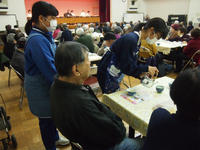 今日は大枝公民館の敬老クリスマス会でした。春日部南中学校からは5人のボランティアが参加。今日の敬老会は130人をこえる大人数で、ボランティアたちは舞台照明やお茶のサービスに、大忙しでした。