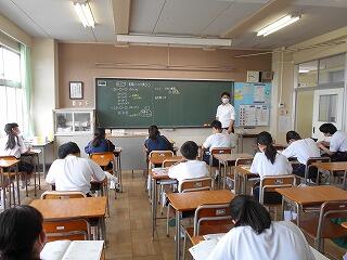 今日は2年生の体育と1年生の数学の授業の様子を紹介します。蒸し暑い中ですが一生懸命に授業に取り組んでいます。