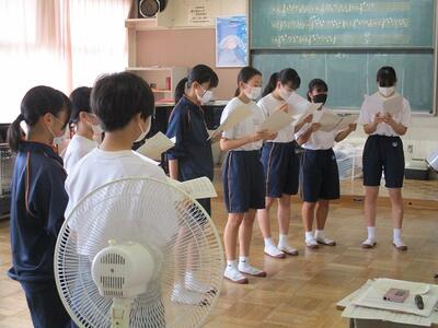 2年生は4時間目に、先日の出前授業で学んだことを、班ごとにまとめて発表会を行っていました。