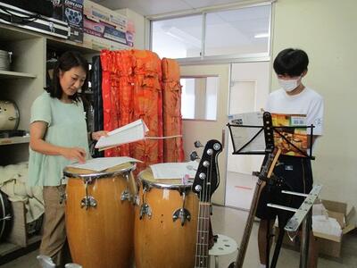 本日、吹奏楽部が7月30日に羽生市産業文化ホールで行われる東部地区大会に向けて、体育館で入退場も含めた実践さながらの練習を行いました。