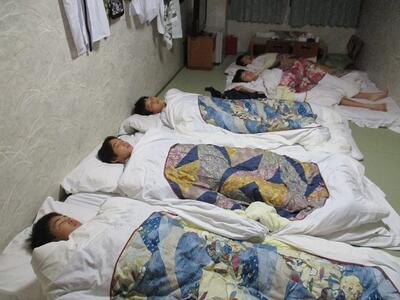 健康観察、部屋の点検、食事の準備など、それぞれが係の仕事に取り組み、今は入浴、食事後のゆとりタイムです。レストランに集まったり、部屋で過ごしたり、仲間と楽しい時間を過ごしています。