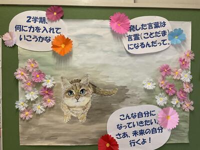 2学期も、生徒達の居心地のよい学校環境を目指して、校舎の色々な場所に、先生方や生徒との協力で作り上げた「心温まる素敵な掲示物」がたくさんあります。