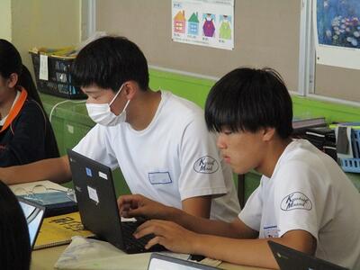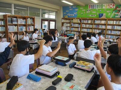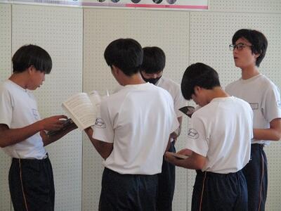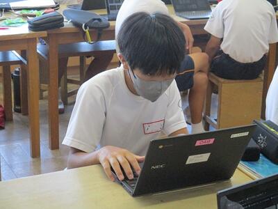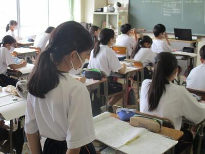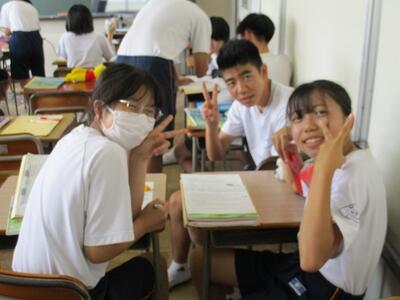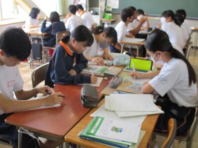 外は台風13号の影響で、風も強く荒れていますが、教室内には落ち着いた爽やかな風が吹いています。南中生は台風なんかに負けません!