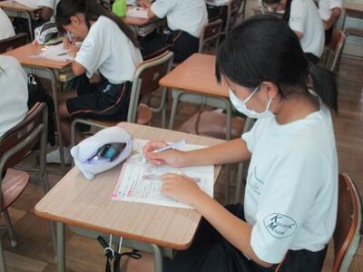今日は、午前中に3年生が「東部地区学力テスト」を行いました。