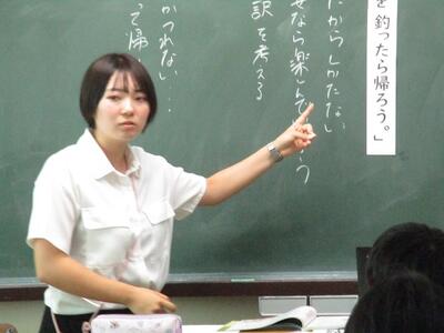 現在教育実習生が2名、実習をしています。今日は実習の成果を見せる研究授業を行いました。2人とも一生懸命頑張っていました。