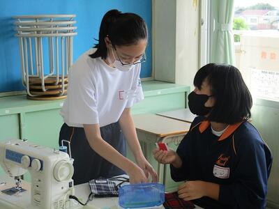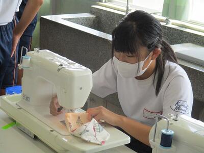 家庭科の授業では、ミシンを使って、ペットボトルフォルダーの製作を行ってます。