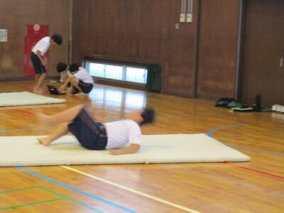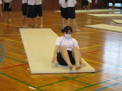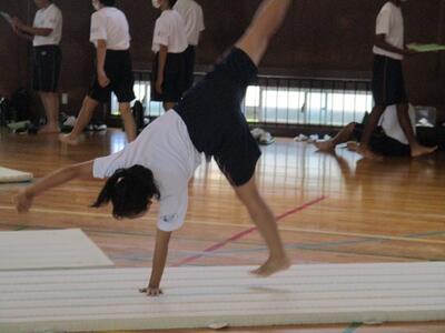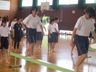 体育の授業では、マットや平均台を使っての授業が始まりました。