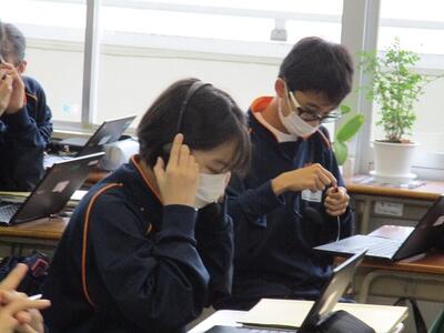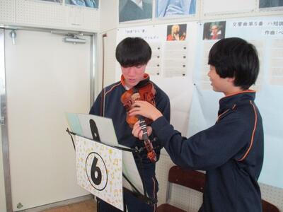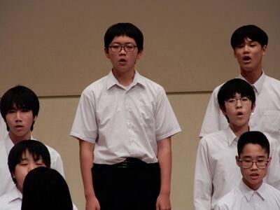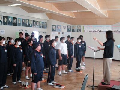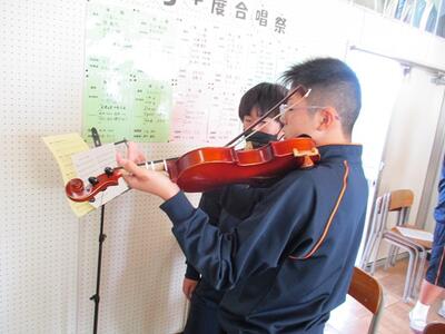 音楽室に行ってみると、明日行われる市内音楽祭に向けて、本校代表の3年生のクラスが仕上げの練習をしていました。心が震えるほど素敵な合唱でした。