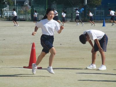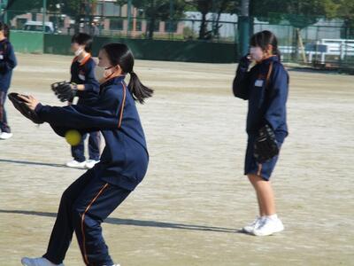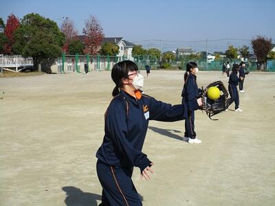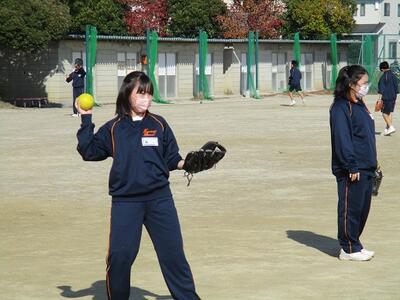 3年生の体育の授業では、校庭で元気にソフトボールを行っていました。