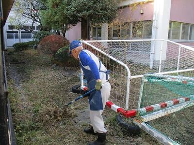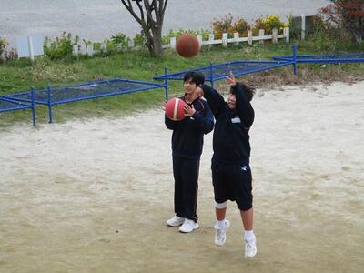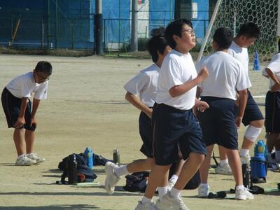 3年生が校庭で球技をしていました。