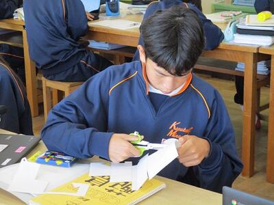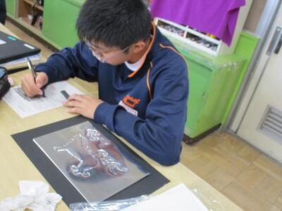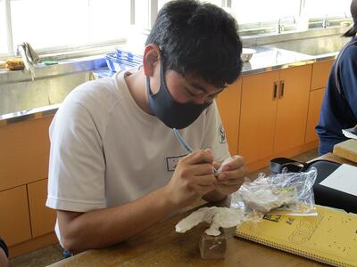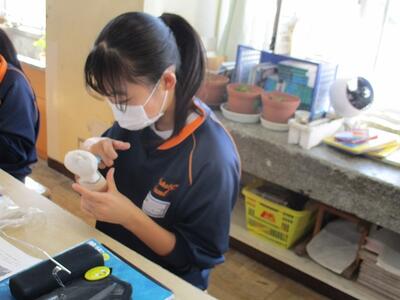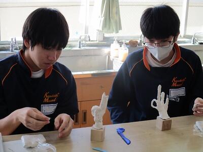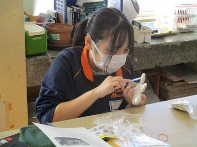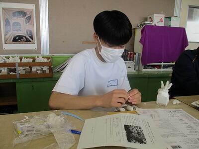 美術の授業では、粘土を使って立体作品を製作していました。