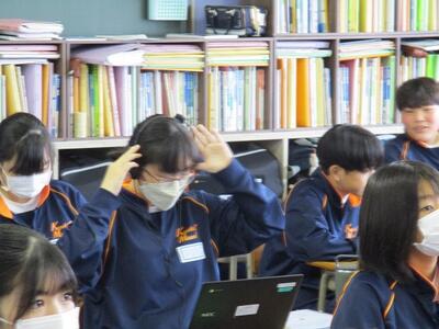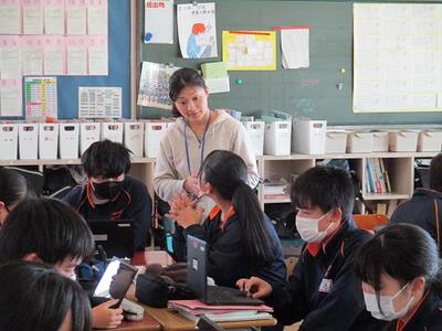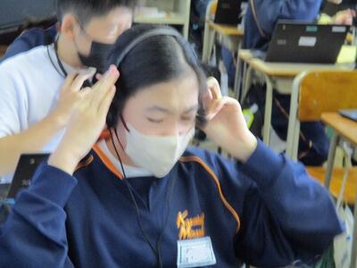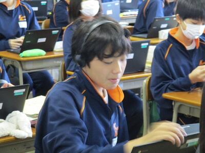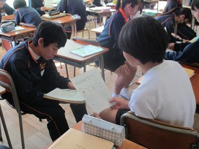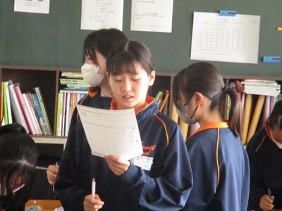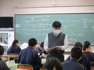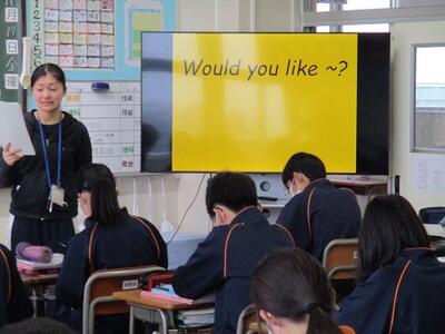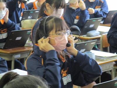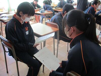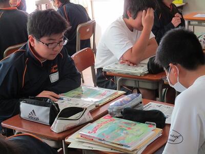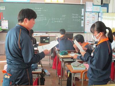 3年生の英語の授業ではALTと、リーディングのテストを行っていました。緊張しながらも、とても上手に読んでいました。