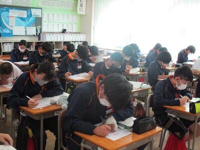 今日は、3年生が東部地区学力検査を行いました。