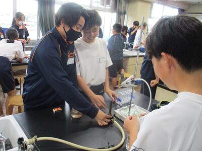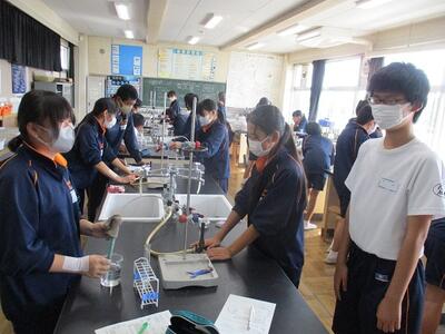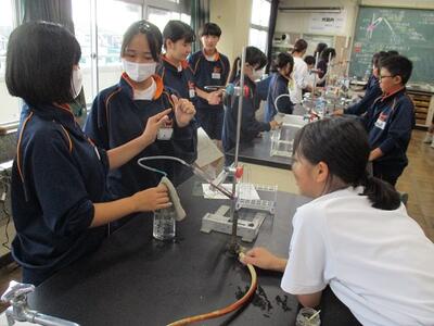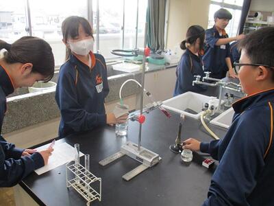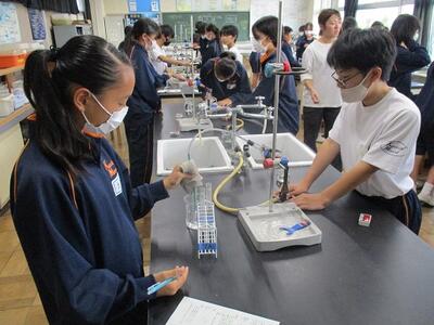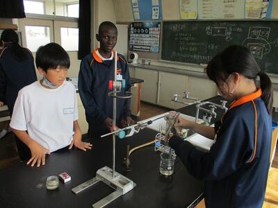 理科の授業では、ガスバーナーを使って実験を行っていました。