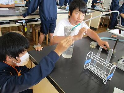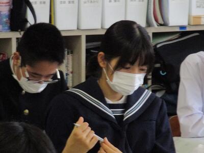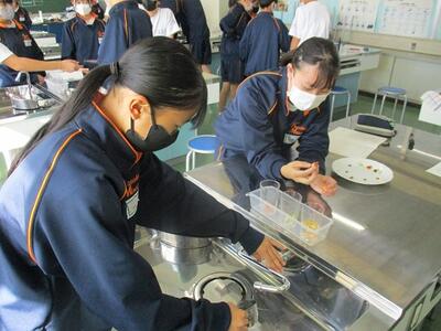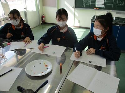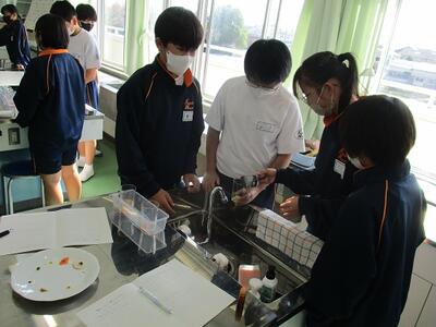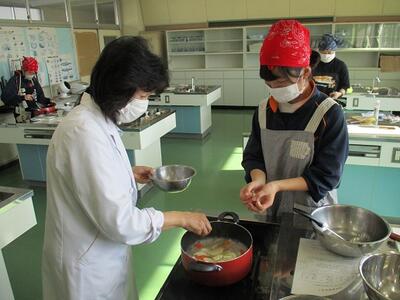 家庭科の授業では、食品に含まれる栄養素を調べる実習を行っていました。