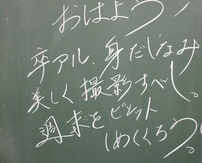 3年生は、本日卒業アルバム用の写真撮影を行っています。