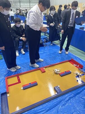 11月11日(金)は伊奈町埼玉県県民活動総合センターで、14日(火)はイオン与野店で、生徒が制作したロボットによる大会が行われました。本校からは「当日製作部門」に3チーム、「全国基礎部門」に4チームがエントリーし、「全国基礎部門」で、3年生2名、2年生2名の4人組チームが3位に入賞し、12月3日に行われる関東大会に見事出場を決めました。おめでとうございます。
