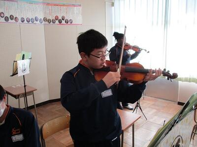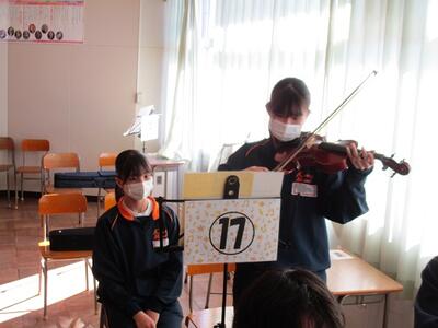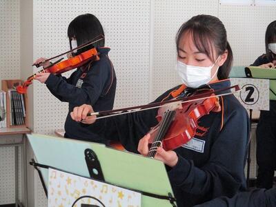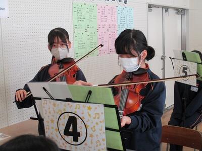 メロディーはすぐに「恋するフォーチュンクッキー!」だとわかりましたが、音は何とバイオリンの音でした。すぐに行ってみると、3年生が2班交代で弾いていました。こんなにも上手に弾けるのかとビックリしてしまいました。さすが3年生です!