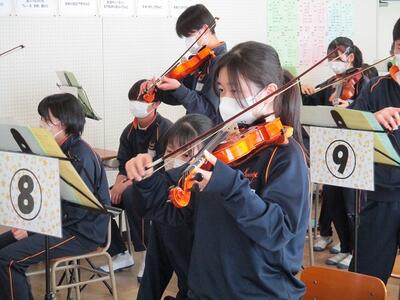 写真は2年生の授業の様子ですが、昨年もやっているので、きれいな音がでていました。