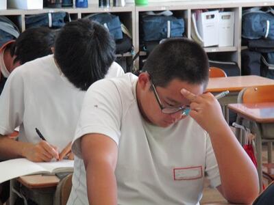 1,2年生は期末テスト最終日でした。この後、大切なことは、わからなかった問題をわかるようにすることです。