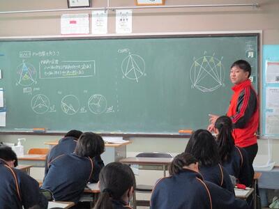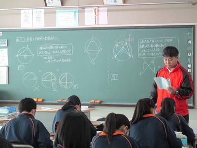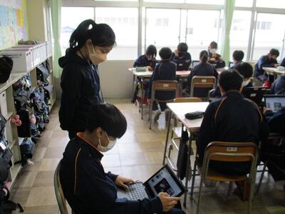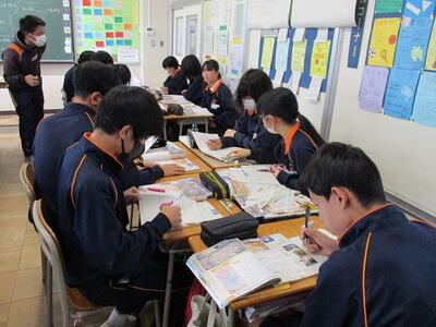 部活動終了後に、お世話になった人への年賀状書きや冬休みの出題をしている生徒がいました。南中生は、冬休みもしっかり頑張っています。