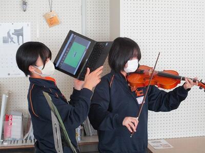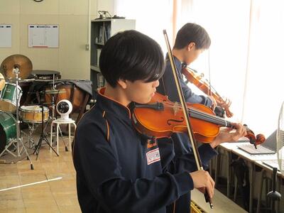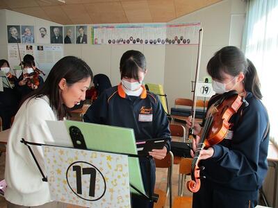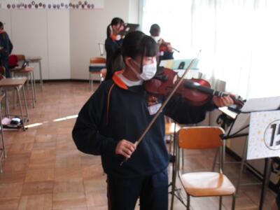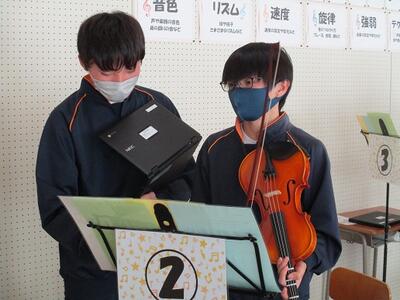音楽の授業では、バイオリンの実技テストを行っていました。バイオリンの授業も、2学期で終了となります。生徒のバイオリンを弾く素敵な姿が見られなくなるのがとても寂しいです。