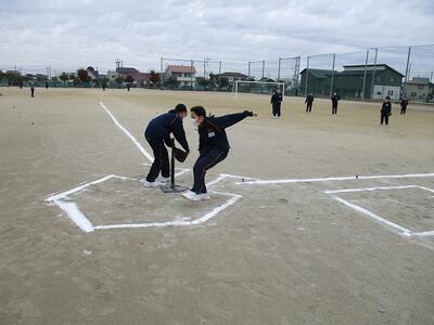 校庭でソフトボールをしていた生徒達は、笑顔いっぱいで走り回っていました。
