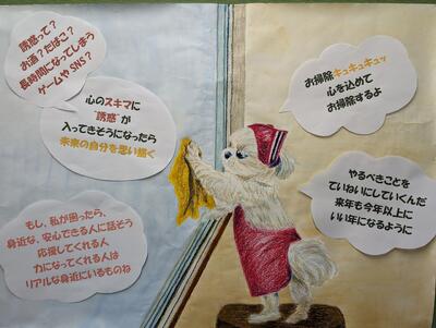 898点の応募の中から、本校の3年生と東中の3年生の作品が、「署長賞」と「会長賞」に選ばれました。