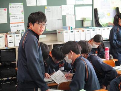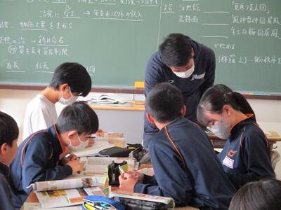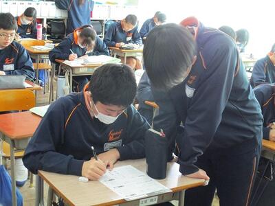 部活動終了後に、お世話になった人への年賀状書きや冬休みの出題をしている生徒がいました。南中生は、冬休みもしっかり頑張っています。