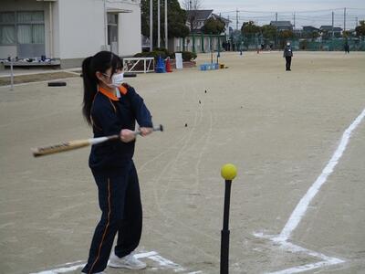 校庭でソフトボールをしていた生徒達は、笑顔いっぱいで走り回っていました。