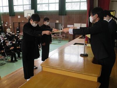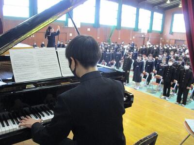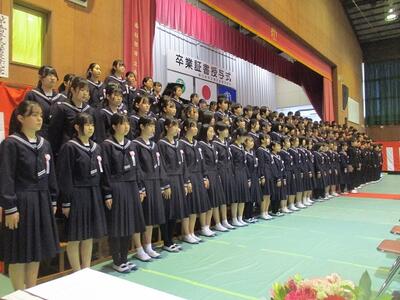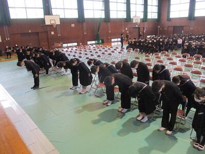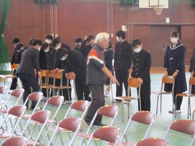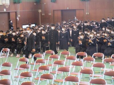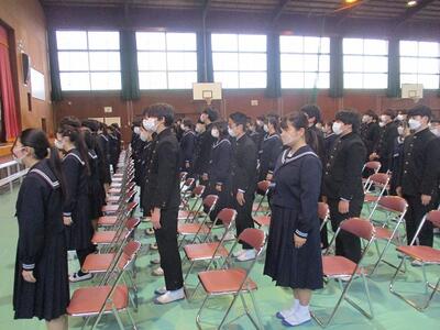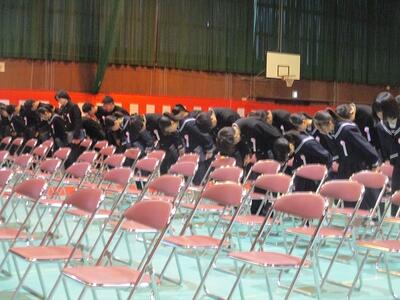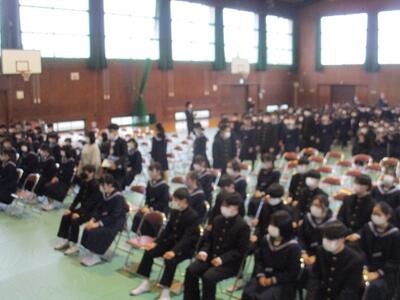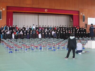 3年生は1、2限と体育館で卒業式の練習を行いました。寒い中、とてもよく頑張っていました。