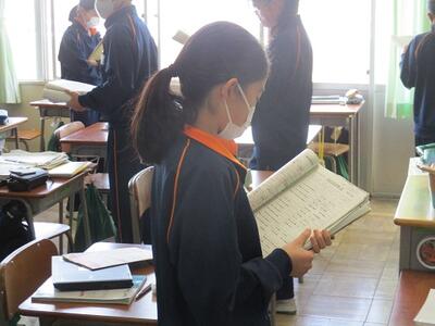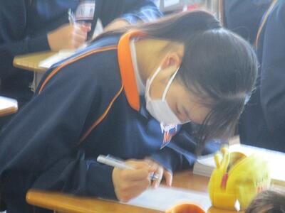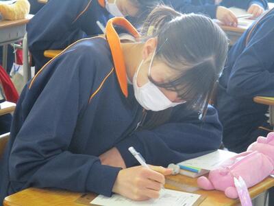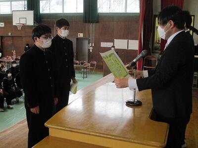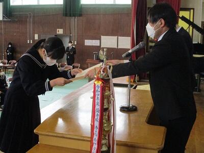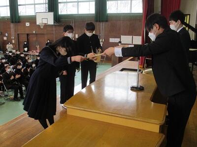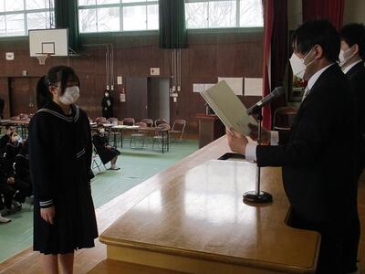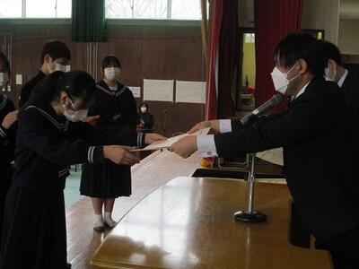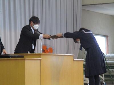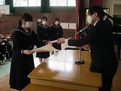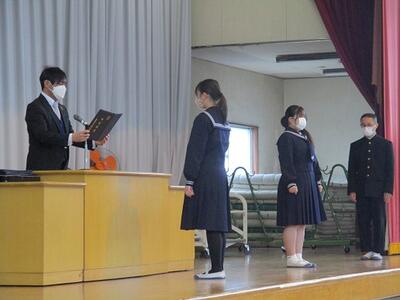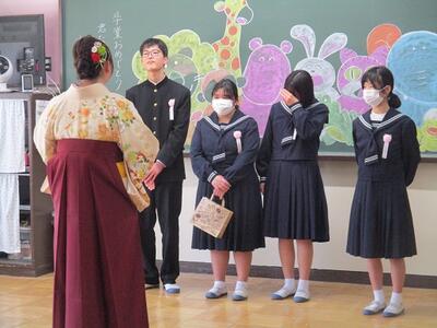 1年生では、学年の先生方へ感謝状が贈られていました。
