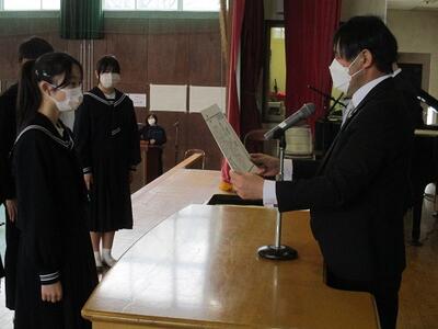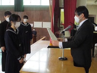 代表生徒の堂々とした発表や、校長先生の式辞を聞く態度がとても立派でした。
