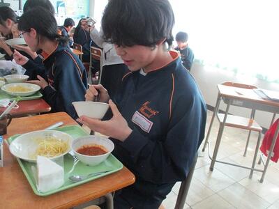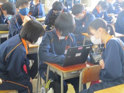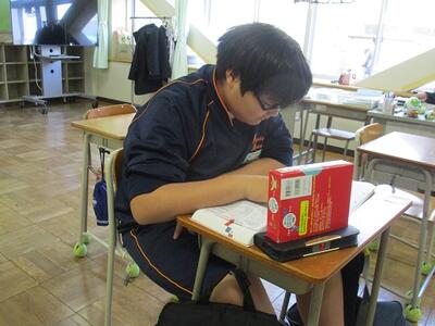 写真は、1年生が1時間目のテスト、2年生はテスト前の自習の時間です。
