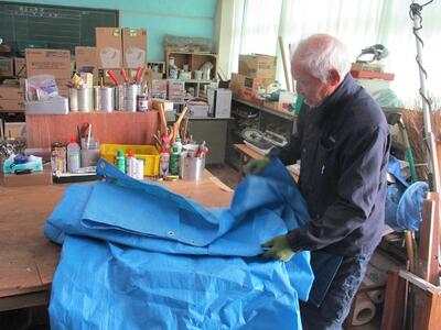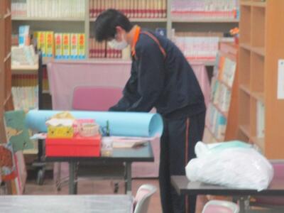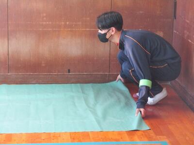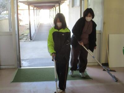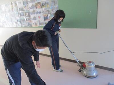 5、6、7組の生徒が教室の床のワックスがけを行ってくれました。床がピカピカです。