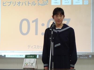 10日(日)、春日部市武里大枝市民センターにおいて、春日部市立武里図書館主催のビブリオバトルに本校から3人が出場しました。お気に入りの本を紹介し、観覧者が投票をします。本校の2年生が見事優勝しました。
