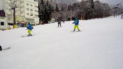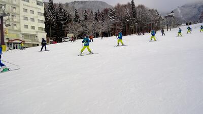 スキー教室は、ホテルに到着しました。この後、12時半から昼ごはんです。