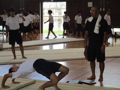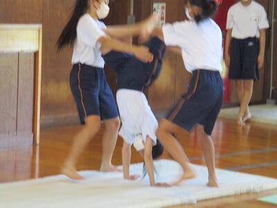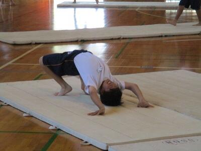 体育の授業では、生徒達が自分で考えて技を工夫したり、難しい技にもチャレンジしていました。