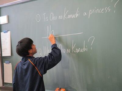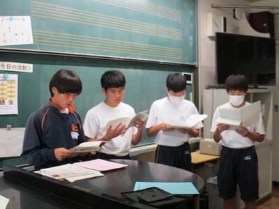 本校は、事前に7ヶ国32の学校の星友が作った上の句に下の句をつけます。