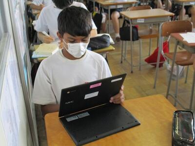 本校の生徒は、毎日クロームブックを持ち帰り、授業、家庭学習で活用しています。