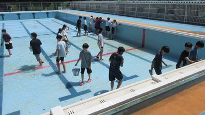 昨日、1年生はプール清掃を行いました。英語では、ALTとスピーキイングテストを行っていました。
