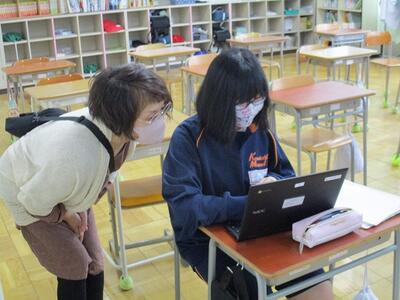 本日、オンラインによる生徒会本部役員新旧引継式・任命式が行われました。