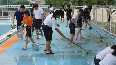 今月から実施されるプールの授業のために、今日からプール清掃が始まりました。生徒たちはよくやっていて、たくさんの土等がありましたが、1日目でかなりきれいになりました。お疲れ様でした。