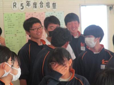 音楽室に行ってみると、明日行われる市内音楽祭に向けて、本校代表の3年生のクラスが仕上げの練習をしていました。心が震えるほど素敵な合唱でした。